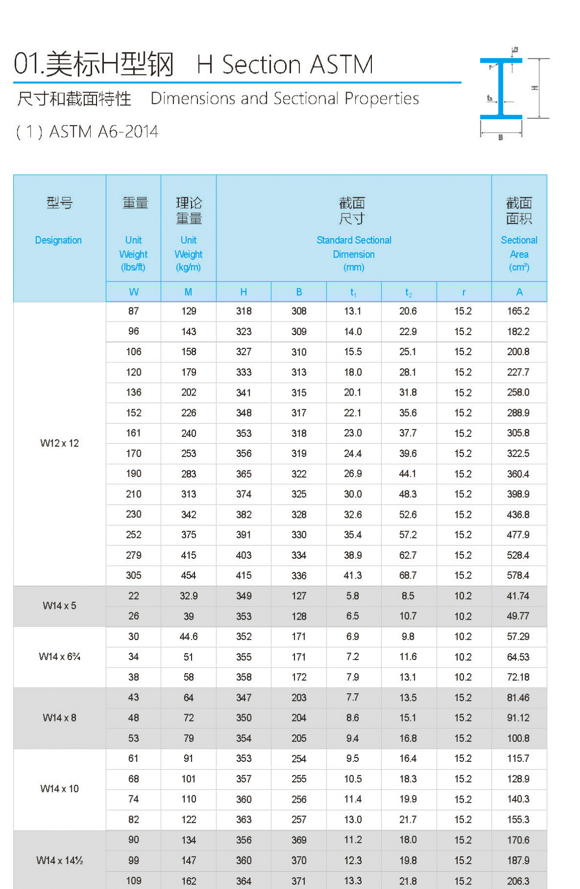 型材知識(shí) 您當(dāng)前位置:首頁(yè) / 型材知識(shí) / 美標(biāo)A572GR50-H型鋼規(guī)格尺寸重量表