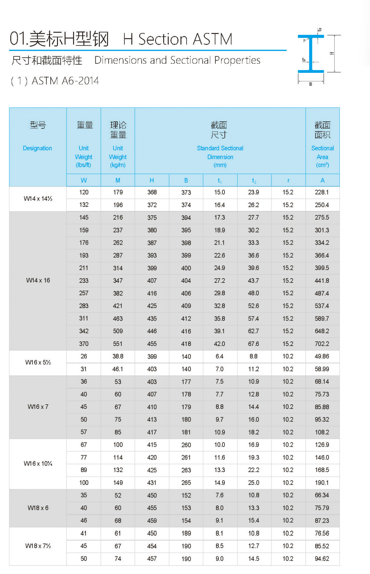 / 型材知識 / 美標(biāo)A36-H型鋼規(guī)格尺寸重量表